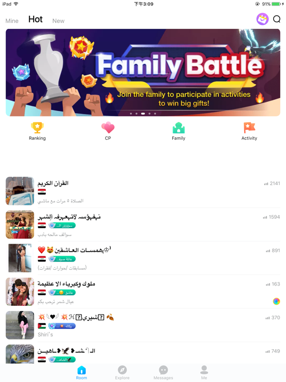 Connect new interests and stories easier by choosing from thousands live rooms daily, all arab countries were covered, Saudi Arabic 、UAE、Kuwait、Bahrain、Oman、Qatar、Iraq、Jordan、Lebanon、Libya、Palestine、Egypt、Algeria、Morocco、Comoros、Djibouti、Mauritania、Somalia , and all people who speak Arabic or follow love of Quran and Islam
