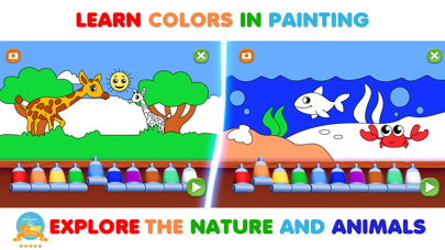 In the "World of Coloring" mini-game, the child will play 12 exciting creative levels together with funny characters to easily get acquainted with colors and sounds as well as: