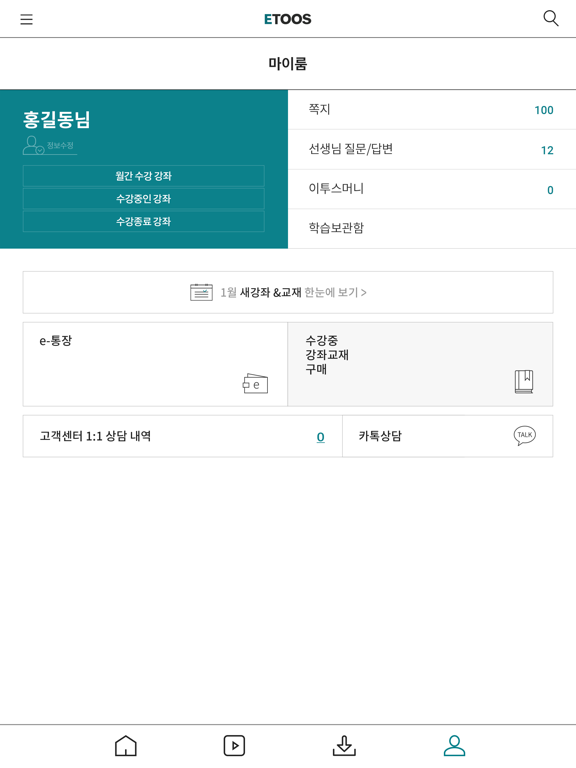 - 쪽지, 선생님 Q&A, 이투스 머니, 학습 보관함 서비스를 이용하실 수 있습니다.