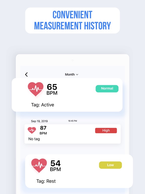 * Simple operation: with your fingers on the back of the camera and flashlight, gently press, you can read the pulse in a few seconds. You can save your heart rate in a different state (such as exercise, rest, etc.);