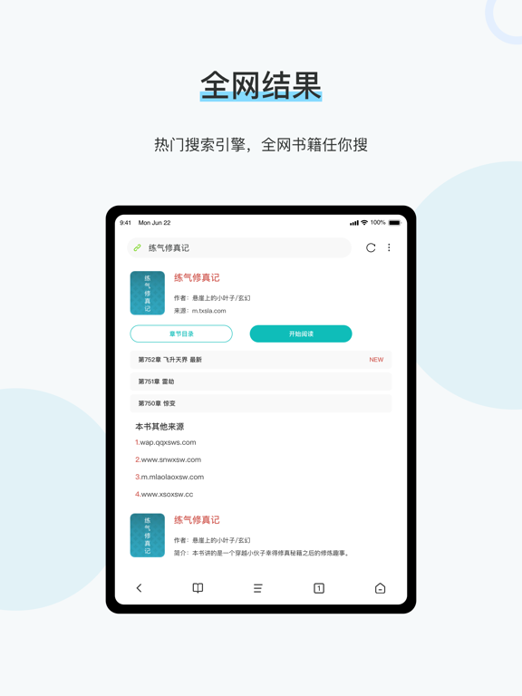 当您从百度、搜狗、必应、谷歌等搜索引擎输入小说关键词时,TXT换源全本小说可以一键检测搜索结果中可以进入小说模式的网站,只要各大搜索引擎能搜索到的小说,您都可以免费阅读。