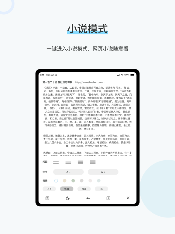 自带的阅读器视图可以将网页转换阅读器模式供您阅读,支持听书、翻页、预读等高级功能,浏览更方便。