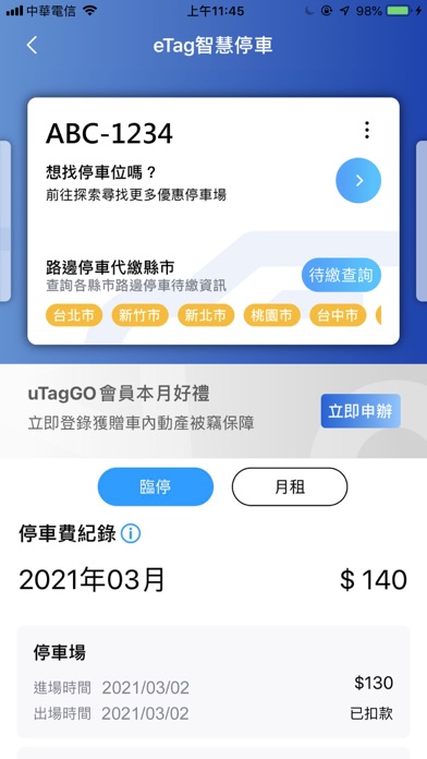 uTagGO係由遠創智慧股份有限公司為提升用路人的行車體驗所發行之行動APP軟體,提供最優質的停車繳費、eTag儲值服務。停車還可享HAPPY GO點數回饋,點數即可免費兌換高速公路通行費!