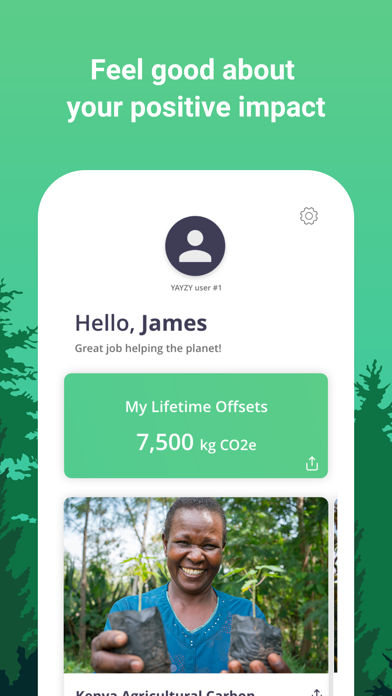 YAYZY integrates with your bank account to track your bespoke carbon footprint, and helps you understand, reduce, and offset it effortlessly.