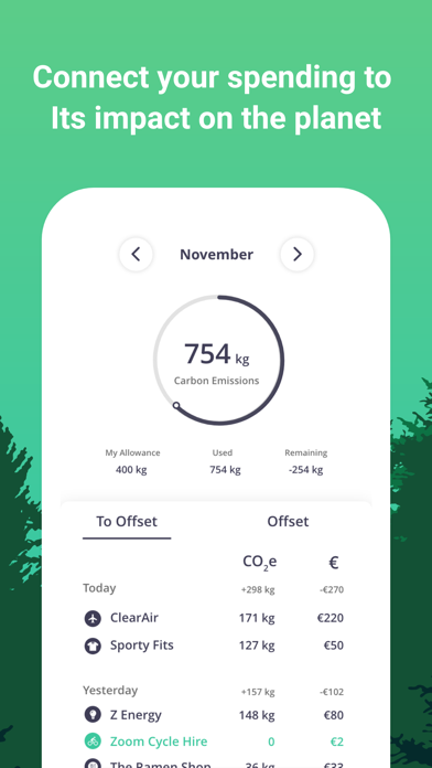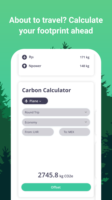 • Offset with ApplePay, Mastercard or Visa to become carbon neutral