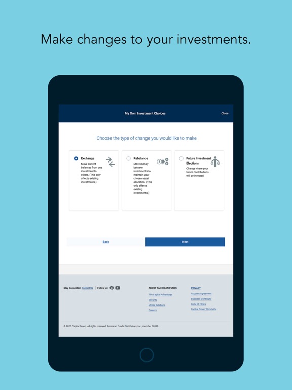 This app is for participants in American Funds RecordkeeperDirect employer sponsored retirement plans (i.e., plan ID’s that start with BRK or IRK and are accessed at americanfunds.com/retire).