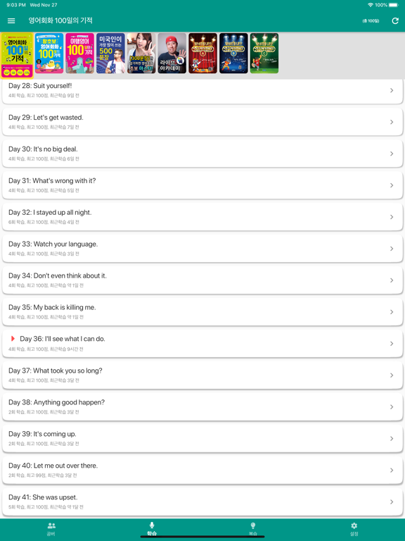 "2년전 "영어회화100일 기적" 책으로 구매해서 공부했어요. 년초 계획으로 열공해보쟀는데 DAY30 일차를 못넘기고 중도하차 하였었네요 ㅜㅜ 앱이 개발되었다길래 바로 공버에 가입했어용 개인적&결론적으론 매우 만족입니다^^ 공버와 함께 100일의 기적을 이루고 싶네요"
