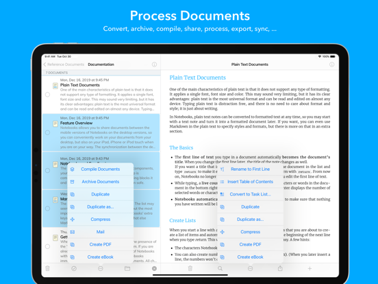 • Notebooks stores all your documents as regular files in standard formats. You are always in control of your documents, never need to worry about how to export them, and they remain compatible across devices and over time.