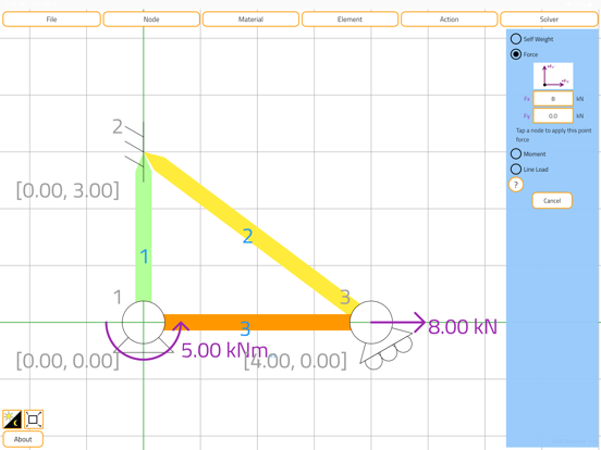 The app is able to determine whether the structure type is a truss, beam or frame. The solution includes: