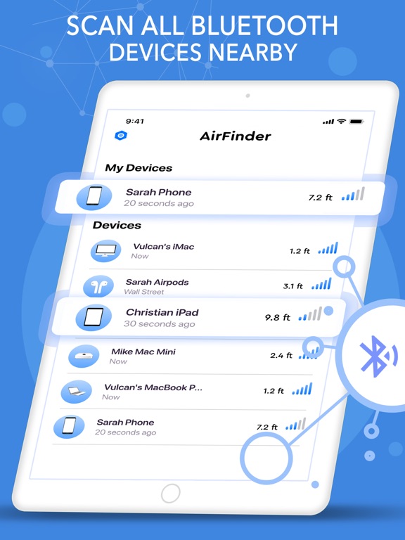 - Device Location Scanner: The detection radar shows you all devices nearby. Move around to discover more devices.