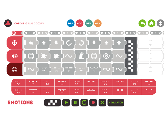 CODING_ With 2 modes: VISUAL CODING where you can program an order sequences and SIMULATOR where you can simulate the programmed sequence.