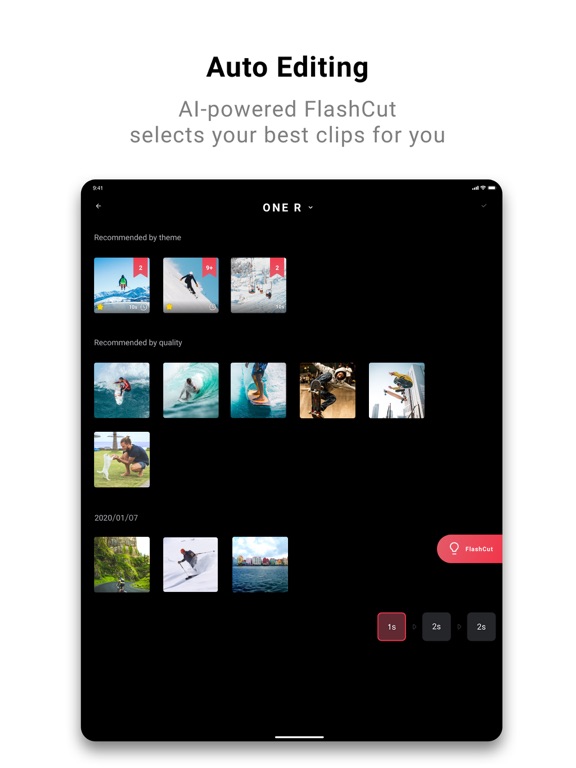 The Insta360 app uses AI to find your best shots and edit them together on beat. FlashCut analyzes footage on theme, quality and time of capture to create cinematic clips that are ready to share.