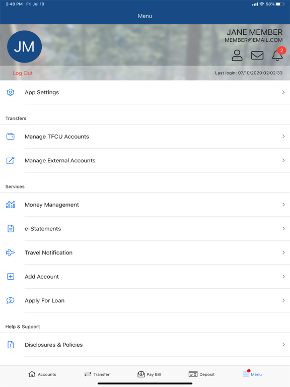 Convenient, fast, secure and free. Managing your accounts with Tinker Federal Credit Union’s Home Branch Mobile App allows you to check balances and transaction history, transfer funds, deposit checks, make loan payments on the go and more.
