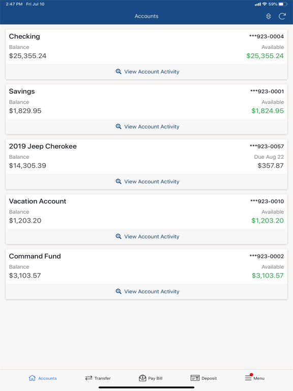 • View detailed account information including account balances, transaction history, credit card balances and more