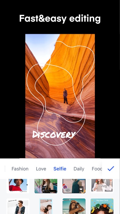 One tap to create your Instagram post, Instagram story or highlight cover with massive templates, which also have multi-size to fit Facebook, Pinterest and YouTube, etc.