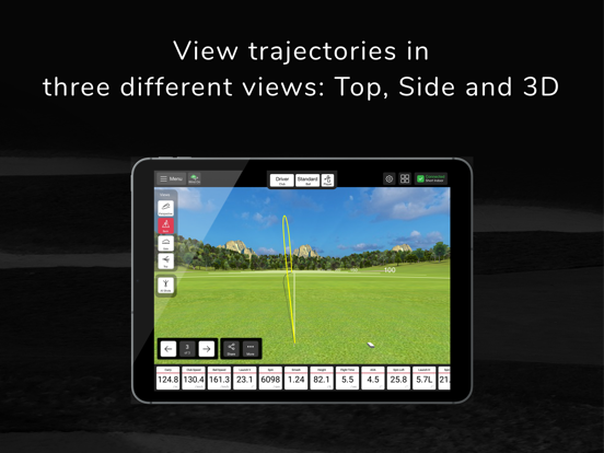 3D trajectory, top and side views – analyze your shot trajectories from different angles and perspectives.