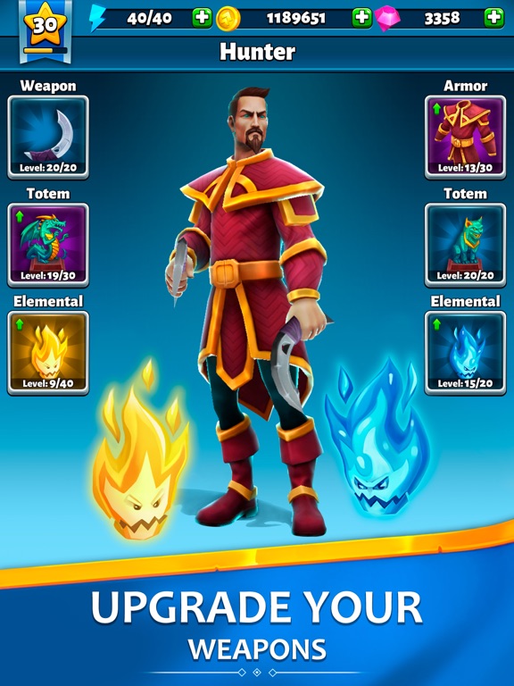 On the road to victory, you’ll encounter the most unusual enemies. Be prepared to confront these mighty magical creatures and save your kingdom! Each new level will become unforgettable due to a unique combination of skills that you can improve in accordance with your chosen tactics. Collect equipment and upgrade weapons to become even more deadly. Use your strategy and hone your combat skills to get even more rewards and go even further through magical worlds full of dangerous creatures.