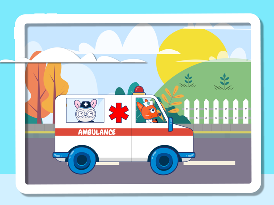 Meemu animals act as taxi drivers, policemen who put prisoners into jail, firemen who extinguish the fire, ambulance drivers who take animals to the hospital and many other colorful scenarios to teach your preschoolers the use and function of different vehicles.
