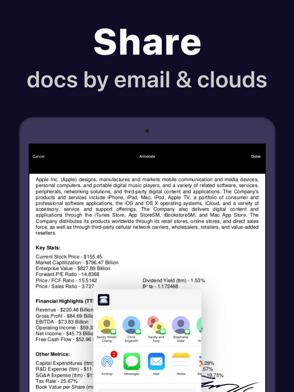 - Share documents to email or clouds