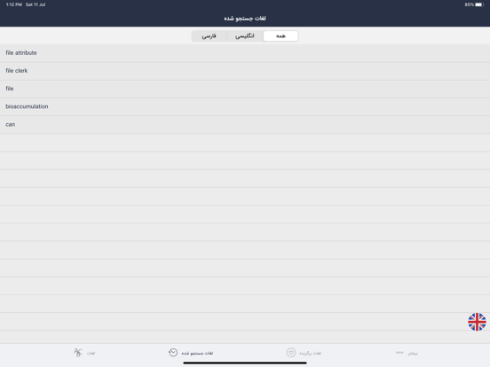 Widget امکان دیدن لغات منتخب و جستجو شده به همراه مشاهده معنی در