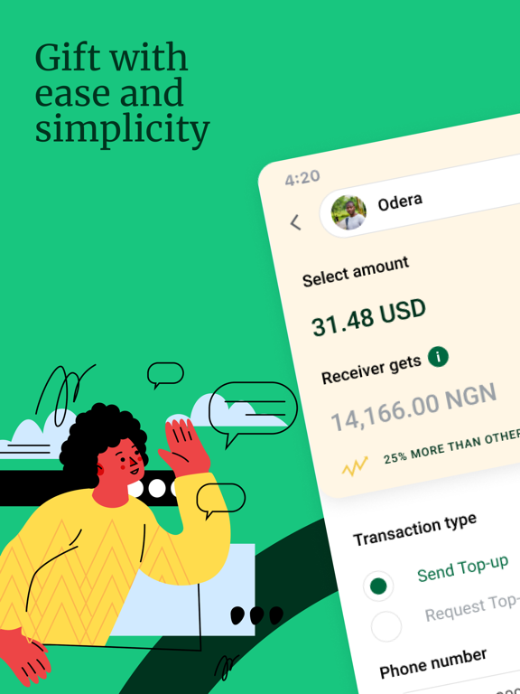 You get the best of both worlds with the Flom app with the best real time exchange rates for international gifting and unparalleled reliability, so you can stay in touch and your loved ones never run out.