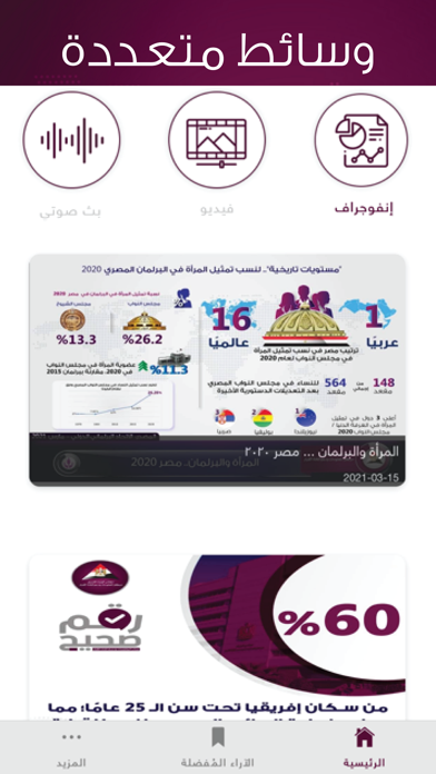 وكذا يُتيح التطبيق الجديد أهم إصدارات مركز المعلومات ودعم اتخاذ القرار من إنتاجه الفكري المتنوع سواء فيما يتعلق بالوسائط المتعددة من الإنفوجراف والفيديوجراف والبودكاست، أو الإصدارات البحثية التي تُقّدم تحليلا لموضوعات متنوعة، إلى جانب عروض الكتب، والمفاهيم التنموية، والخبرات والتجارب الدولية، حيث يتضمن التطبيق حاليًا ما يفوق الألف إصدارة. التي يتم ضخها عبر مكون الإصدارات والتقارير، والوسائط المُتعددة.