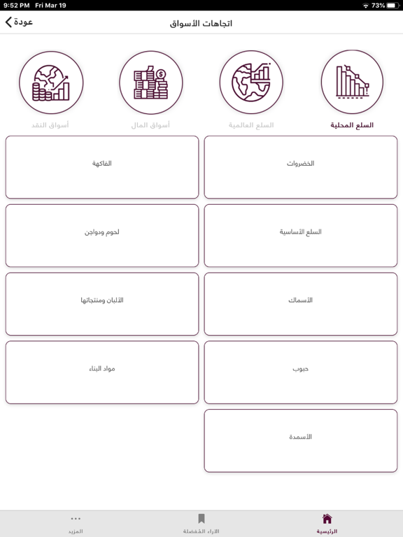 حيث يتناول التطبيق أبرز اتجاهات الأسواق برصد أسعار ما يفوق 75 سلعة محليا وعالميا، مستعرضا الأسعار العالمية لأهم السلع كالنفط والغاز الطبيعي والمعادن والحاصلات الزراعية والعديد من السلع الأخرى والتي يتم رصدها بالاستناد إلى أكثر من 40 عنصر بيان تُحدث دوريا بينما لم يغفل التطبيق رصد أسعار أهم السلع المحلية حيث يُقدّم الأسعار المحلية لما يفوق الـ 30 سلعة يتم رصدها وتحديثها يوميًا منها الخضروات والفاكهة واللحوم ومواد البناء والأسمدة.