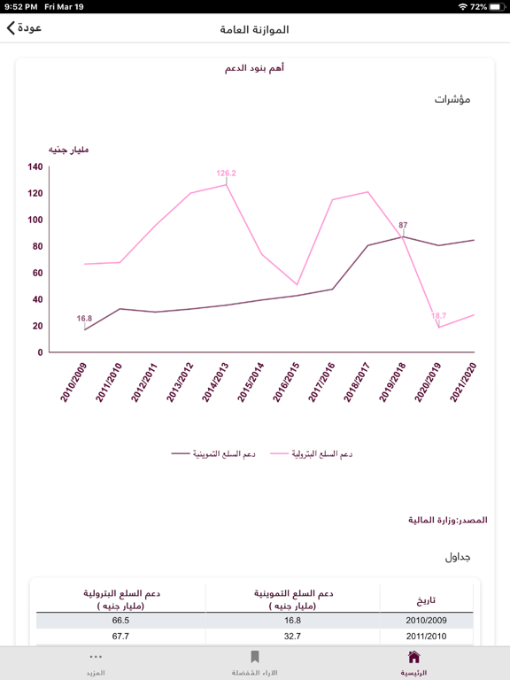 كما يتيح التطبيق أهم مؤشرات حركة البورصات المحلية والعالمية والتي يتم متابعتها من خلال ما يفوق الـ 20 بيان، وكذا أسعار صرف العملات الأجنبية، إلى جانب البيانات القومية الاجتماعية والاقتصادية بما يفوق الـ 100 عنصر بيان التي تتناول موضوعات عدة أبرزها: الموازنة العامة للدولة، والتضخم، والاستثمار، والناتج المحلي الإجمالي، والبيانات النقدية، والسكان والزيادة الطبيعية، ويستعرض التطبيق تطور المؤشرات المحلية لمدة زمنية تفوق الـ 10 سنوات ليتضمن التطبيق ما يفوق الـ 1000 قيمة لمختلف عناصر البيانات المحلية. كما يستعرض التطبيق وضع مصر في المؤشرات الدولية ليغطي في نسخته الحالية ما يفوق الـ 50 مؤشر دولي تتضمن ما يفوق الـ 500 مؤشر فرعي، يتم تحديثها من مصادرها الدولية فور صدورها.