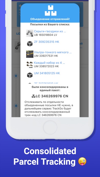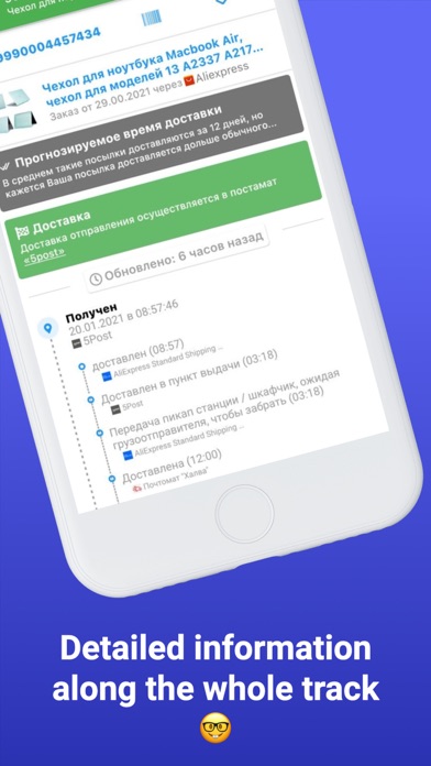 Track all your parcels with Aliexpress (aliexpress), Joom (Jum), JD, Pandao, GearBest and other online stores, without ads, registrations and SMS, for that with Push notifications on parcel statuses, Russian mail tracking.