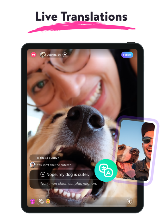 * Real-time text translation on video chat