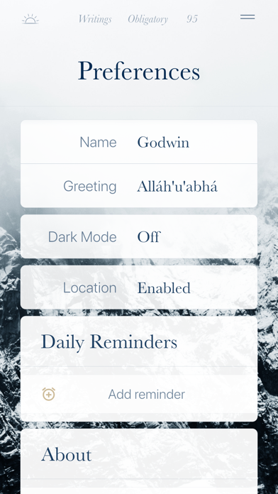 Dawn is an elegant easy to use app to assist you with your daily obligations to read the Bahá’í Writings, say your Obligatory Prayers, and recite the Greatest Name.