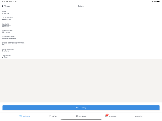 • Overføre penge mellem virksomhedens interne konti og til eksterne konti