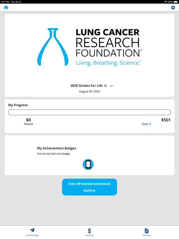 Fundraise for lung cancer research on the go with your LCRF app. Update your fundraising page, send emails, and check your progress – all from the palm of your hand. The LCRF app is a great tool to track your fundraising progress, and to keep current on LCRF news!