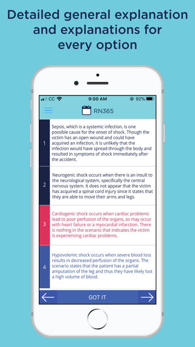 Once a question is answered, the app identifies the correct option along with expansive explanations for all given options. This allows candidates to gain valuable insight when attempting to differentiate between good, better, and best options.