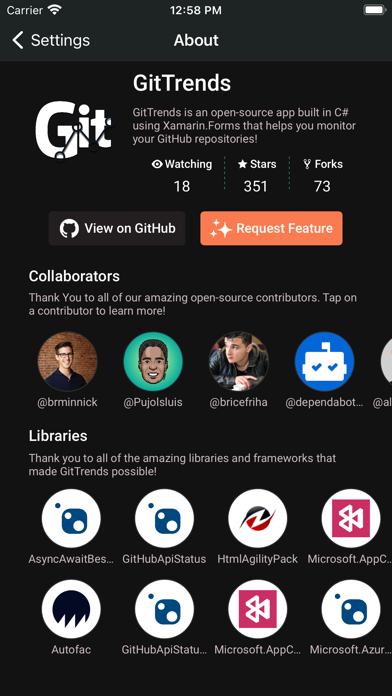 GitTrends helps you monitor your GitHub Repositories: - Connect to GitHub - Monitor GitHub Repo Views - Monitor GitHub Repo Clones - View Referring Sites - Be Notified when Repos are Trending