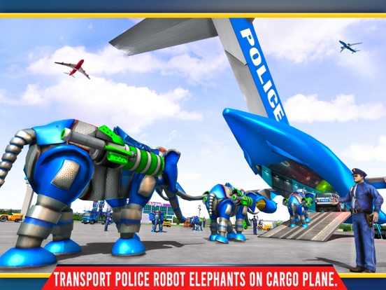 Learn to transform police robots into elephant and hummer jeep & transport them in cargo airplane. US police elephant robot game contains a lot of challenging missions where you have to complete the duty to transport elephant robot and jeep in cargo truck to the airport. Highlighted indicator will help you to reach the destination in robot games. Apart from the cargo plane transportation tasks, you have to fight against enemy robots. So, be prepare to tackle the city battle with evil robots and AI shooting cars as well. You can utilize multiple superpowers having amazing animation effects are provided to win the fight against evil robots. A mini map will help you to locate the enemies around.