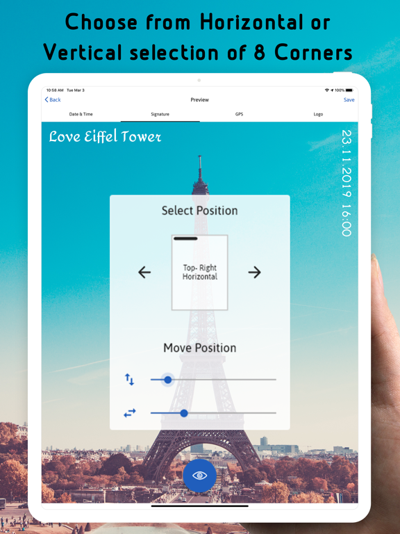Effectively add watermark of photos and include captions for pictures that are caught by the built-in camera from Auto Timestamp camera. Copyright your photographs with logo and Signature stamp.