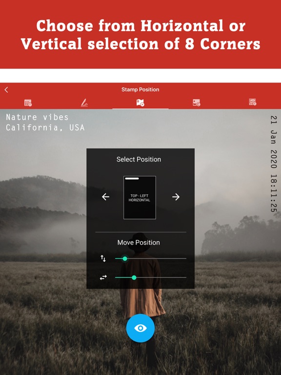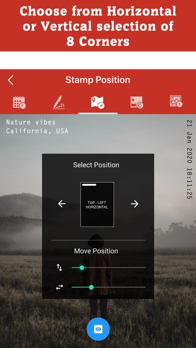 • Auto Add 5 in 1 Stamps to your clicked photos with Auto Stamper camera