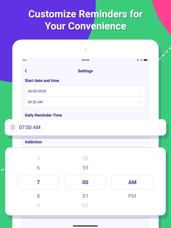 - Style your app with multiple color themes for each addiction