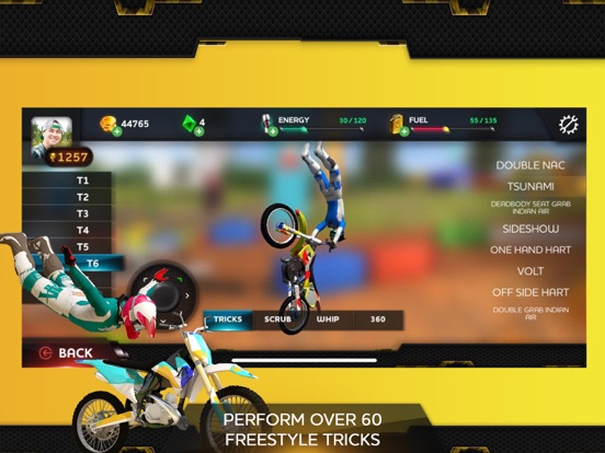 We’re introducing scrubs, whips and freestyle to mobile motocross gaming like you’ve never seen before. Choose your style whether it be to throw down a monster turn up, racer whip, turn down & loads more. Show your motor skill!