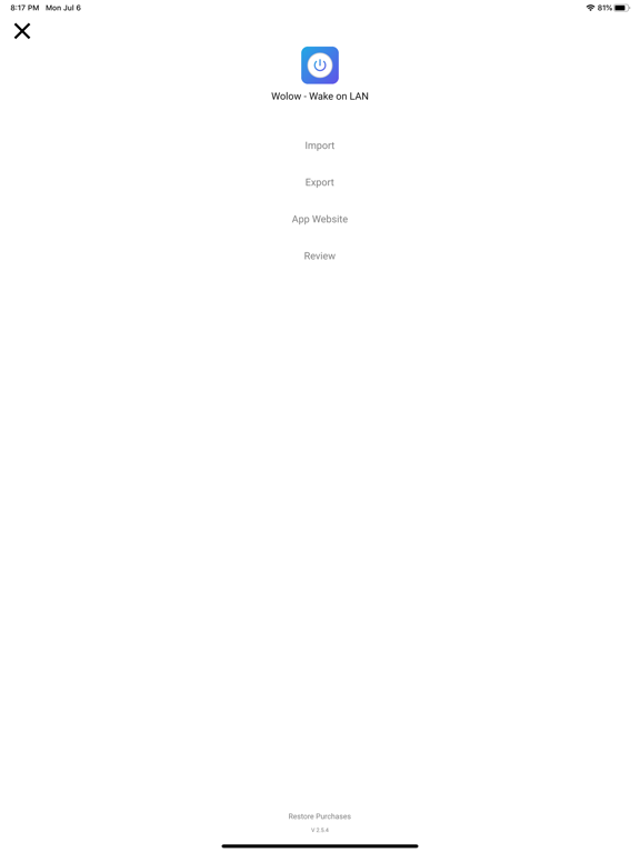 Wolow is a wake on LAN app that allows you to remotely start up a computer by sending a "magic packet" request.