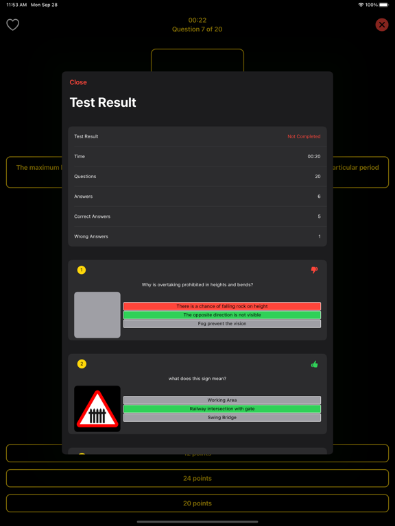 Train yourself on computer test for Dallah driving school in Saudi Arabia. - Questions chosen from previous real test for student. - High quality traffic signs images. - Ability to review test result and check what is the correct answer. - You can test yourself on signs only. - You can start a custom test for example points table questions only.
