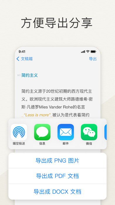 + 可导出 PDF, DOCX, 以及方便手机浏览的图片