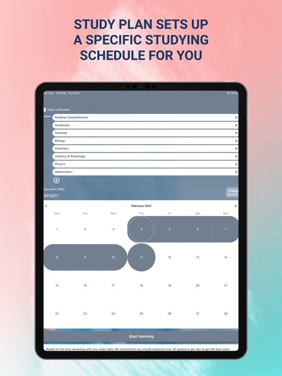 • Practice by topics: Test your knowledge by practicing by topics. A topic that is divided into small parts helps you not be bored when studying.