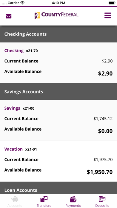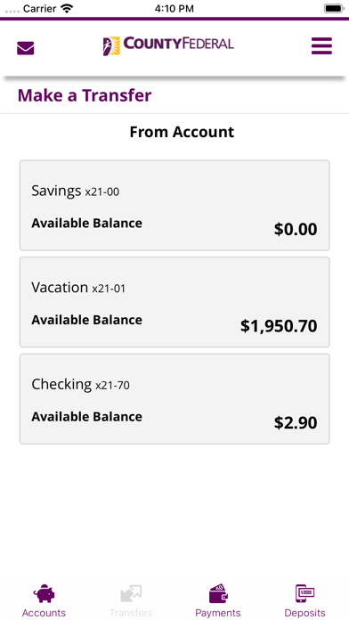 The County Federal Mobile Banking App lets you securely manage your accounts virtually anytime, anywhere. Check your account activity and balances, pay bills, transfer funds, set up alert notifications – and much more.