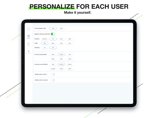 Customizing this app is a breeze! Easily and quickly change the grid size, the difficulty, add a sidebar signal that can flash in a variety of colors to draw attention to the left or right. Everything from appearance to access is customizable, so you can make it your own.
