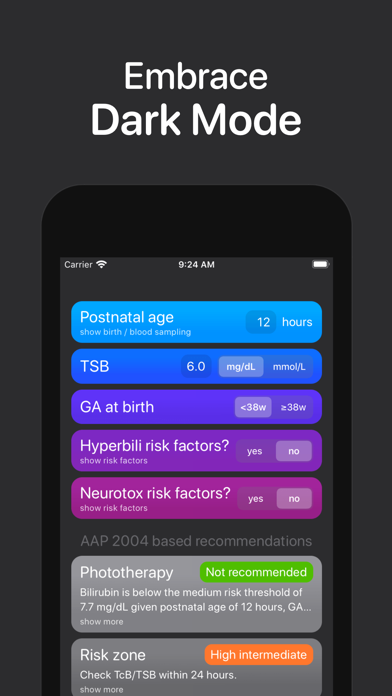 • Phototherapy and Bhutani nomograms providing visualization of results.