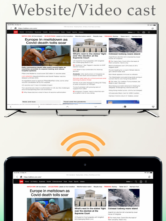 - Mirror any application or games (for watching) wirelessly on your iPhone/iPad screen to TVs over your wifi network