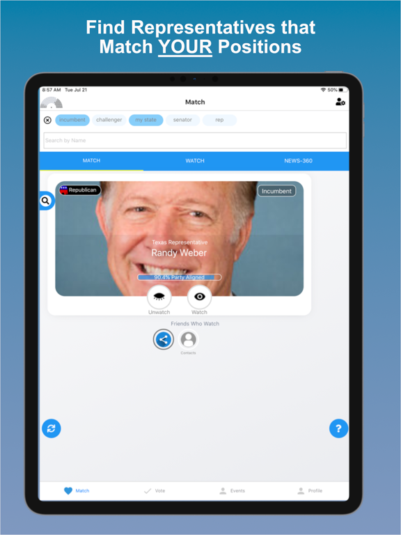 VARE is a matching tool between voters and their representatives. It allows voters to see how their views align with the people who represent them, based on policies that directly affects the voters. As a voter, you will know within seconds if the representative truly stands for your interest. Voters can use the VARE App and services to influence the actions of those representing them as well as help identify who to vote for in elections.