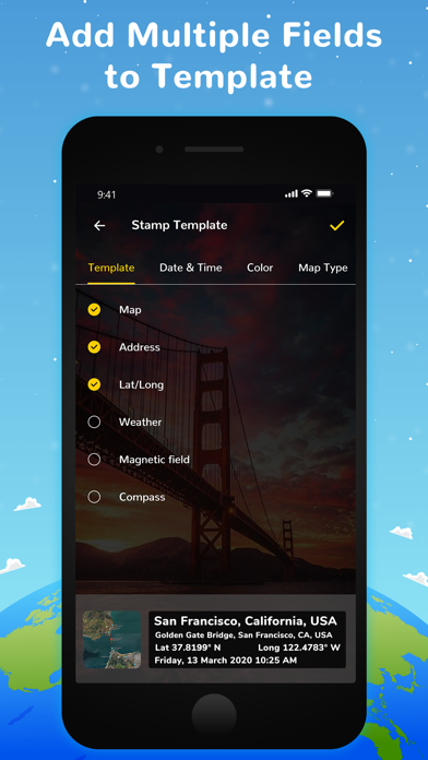 - Add Fields like Map, Address, Latitude longitude, Weather, - --Magnetic Field, Compass to Template